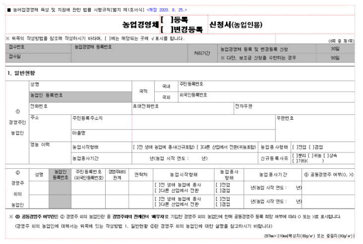 농업경영체 등록 신청서를