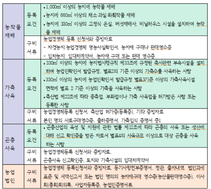 2. 농업경영체 등록 조건